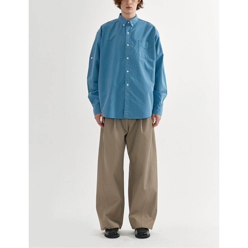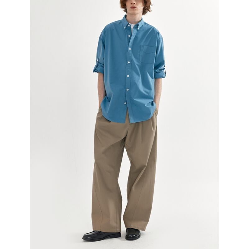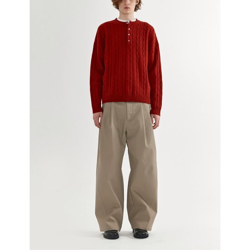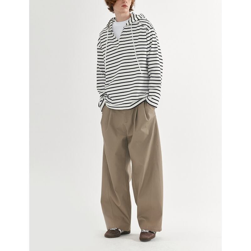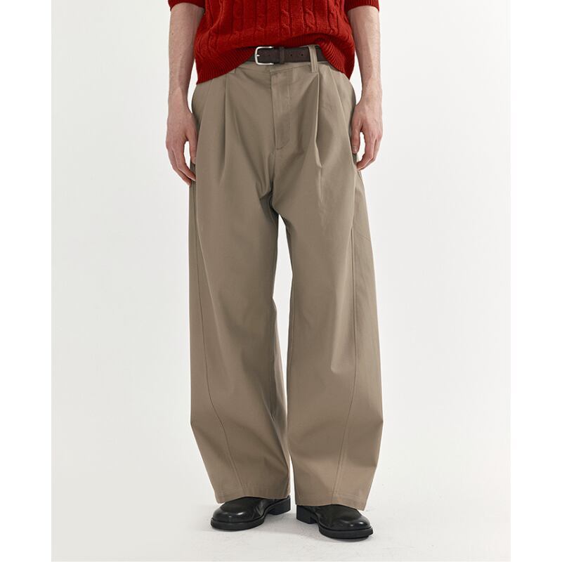 タックが入ったワイドシルエットのチノトラウザーズパンツ。