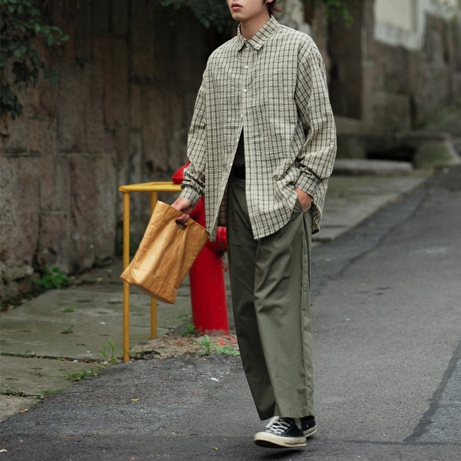 オーセンティックな雰囲気のチェックシャツ。 落ち着いたトーンにしながらも、スタイリングの主役として活躍する一着です。 一枚着としてはもちろん、アウターのインナーとしても使いやすいアイテムです。 ■ color グリーン ネイビー ■ material コットン ■ size S / M / L / XL S :肩幅54cm 袖丈58cm 胸囲122cm 着丈71cm M :肩幅56cm 袖丈59cm 胸囲126cm 着丈74cm L :肩幅58cm 袖丈60cm 胸囲132cm 着丈77cm XL :肩幅60cm 袖丈61cm 胸囲138cm 着丈80cm ※採寸方法により多少の誤差がある場合がございます ■モデル身長:178cm ■着用サイズ : XL [ 商品管理番号:a-0331] 【お買い物にあたっての注意事項】ご購入前にこちらをご覧ください。 https://store.path-online.shop/about ▶<PATH>TOP PAGEから、新商品やお得な情報をチェック! https://store.path-online.shop/ ▶【Instagram】公式インスタグラムページはこちら。 https://www.instagram.com/path_official_jp/