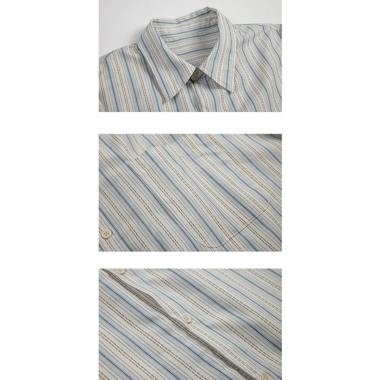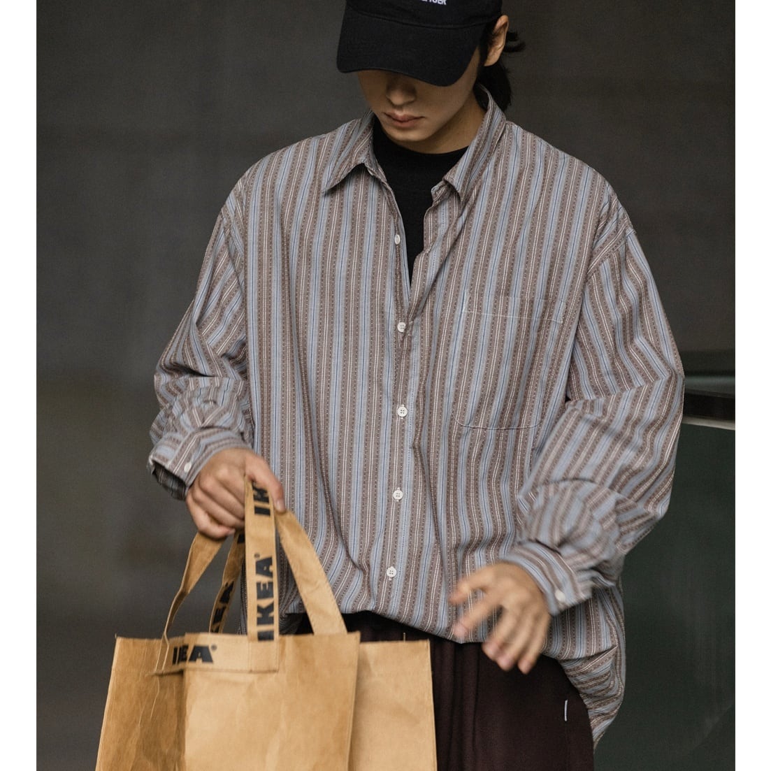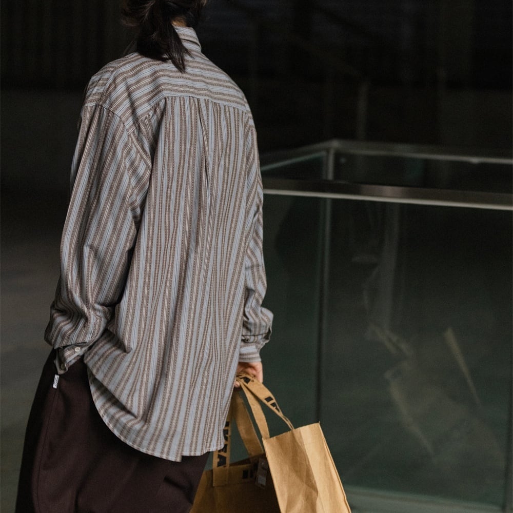 少しだけエスニックな雰囲気を付与したマルチストライプシャツ。 ドロップショルダーシルエットでリラックス感のある着こなしができる一着。 タックインしたスタイリングもオススメです。 ■ color ブルー ブラウン ■ material コットン ■ size S / M / L / XL S :肩幅55cm 袖丈57cm 胸囲138cm 着丈77cm M :肩幅56cm 袖丈58cm 胸囲142cm 着丈79cm L :肩幅57cm 袖丈59cm 胸囲146cm 着丈81cm XL :肩幅58cm 袖丈60cm 胸囲150cm 着丈83cm ※採寸方法により多少の誤差がある場合がございます ■モデル身長:178cm ■着用サイズ : XL [ 商品管理番号:a-0402] 【お買い物にあたっての注意事項】ご購入前にこちらをご覧ください。 https://store.path-online.shop/about ▶<PATH>TOP PAGEから、新商品やお得な情報をチェック! https://store.path-online.shop/ ▶【Instagram】公式インスタグラムページはこちら。 https://www.instagram.com/path_official_jp/