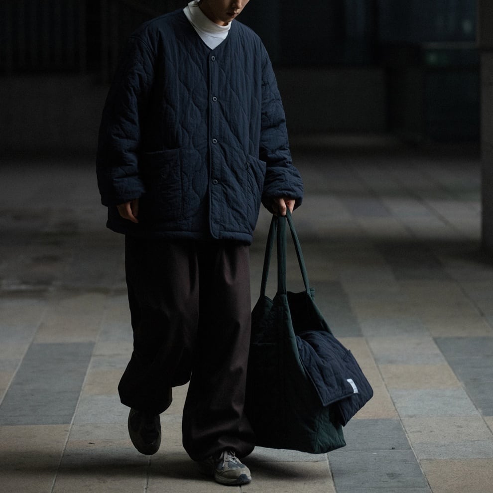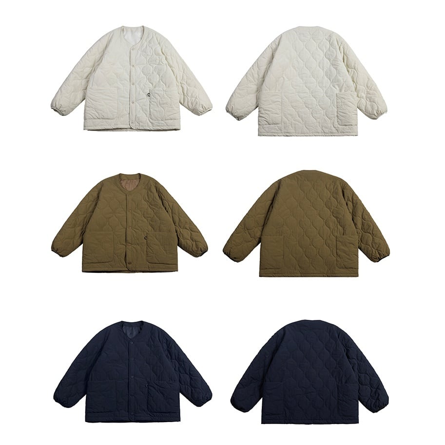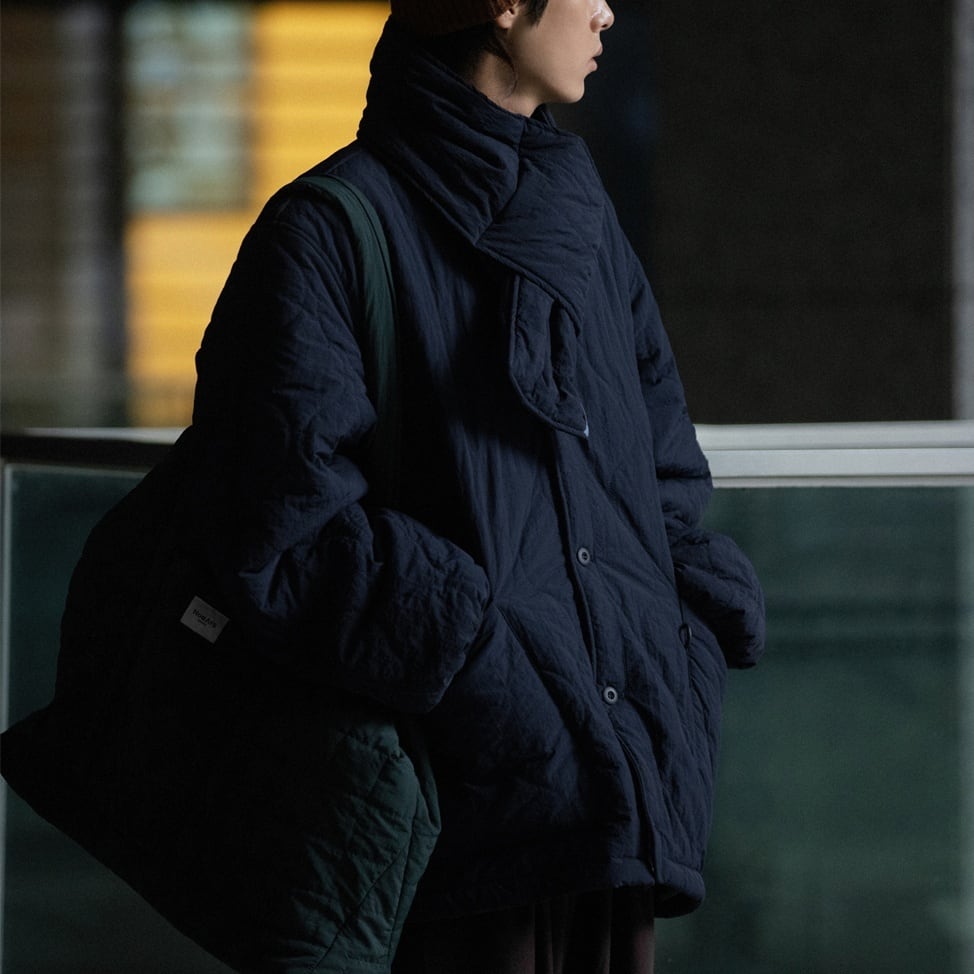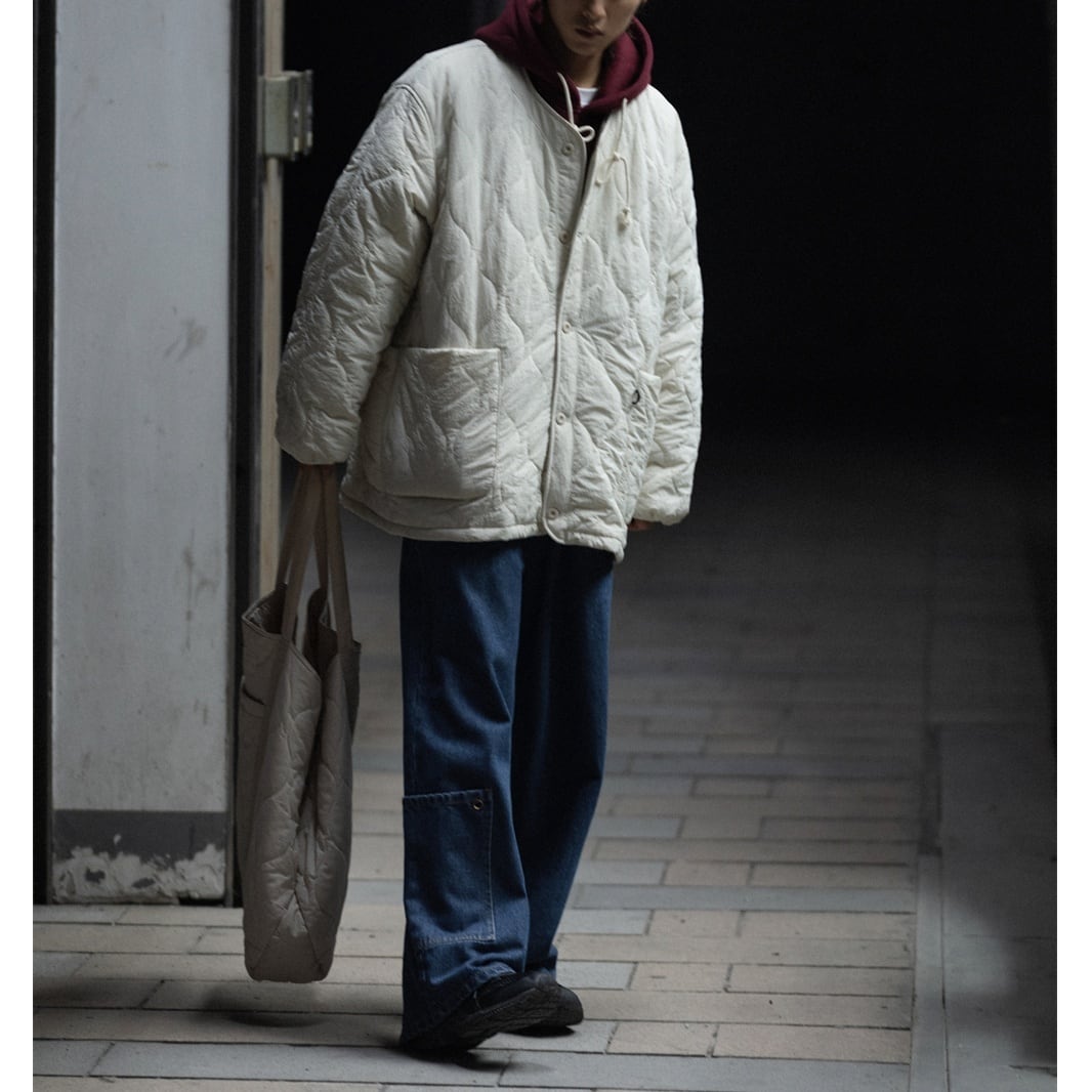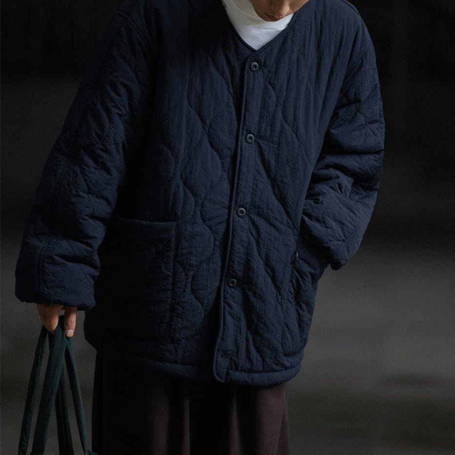 ノーカラーの中綿入りライトブルゾン。 ミリタリーテイストのキルティングが雰囲気のある一着。 マルチポケットのディテールもポイントになっています。 薄手の中綿入りブルゾンの為、真冬はコートやナイロンアウターのインナーとしてもオススメです。 ■ color オフホワイト ブラウン ネイビー ■ material ナイロン ■ size M / L / XL M :肩幅56cm 袖丈60cm 胸囲138cm 着丈72cm L :肩幅57cm 袖丈61cm 胸囲142cm 着丈74cm XL :肩幅58cm 袖丈62cm 胸囲146cm 着丈76cm ※採寸方法により多少の誤差がある場合がございます ■モデル身長:178cm ■着用サイズ : XL [ 商品管理番号:a-0423] 【お買い物にあたっての注意事項】ご購入前にこちらをご覧ください。 https://store.path-online.shop/about ▶<PATH>TOP PAGEから、新商品やお得な情報をチェック! https://store.path-online.shop/ ▶【Instagram】公式インスタグラムページはこちら。 https://www.instagram.com/path_official_jp/