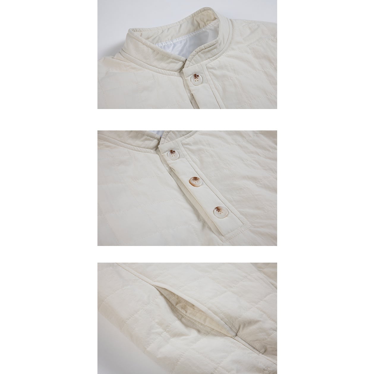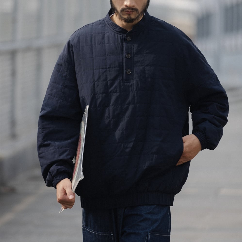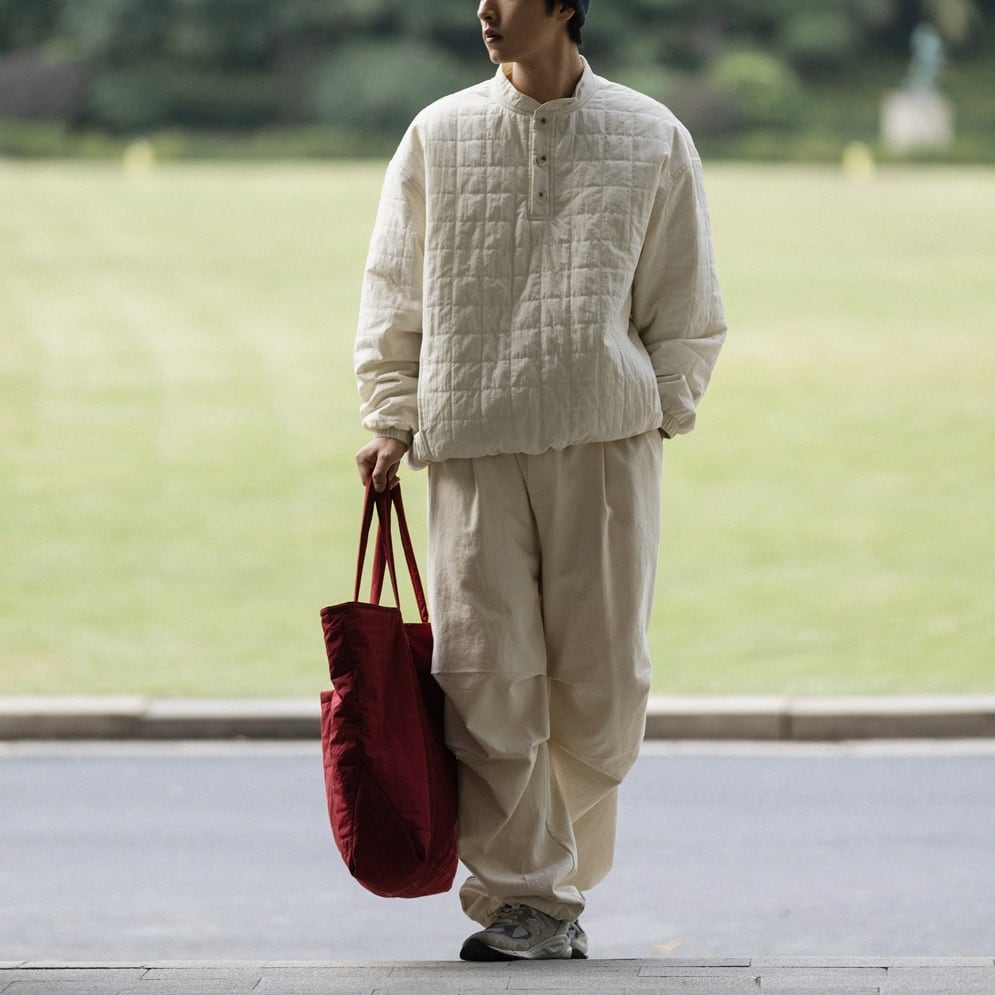 プルオーバータイプのワイドキルティングアウター。 バンドカラー仕様の襟や、使い勝手の良いワイドシルエットがポイントになっています。 アウターとしてはもちろん、冬場はコートやワイドアウターのインナーとしてもオススメです。 ■ color オフホワイト ネイビー ■ material ナイロン ■ size M / L / XL M :肩幅60cm 袖丈57cm 胸囲132cm 着丈74cm L :肩幅61cm 袖丈58cm 胸囲136cm 着丈76cm XL :肩幅62cm 袖丈59cm 胸囲140cm 着丈78cm ※採寸方法により多少の誤差がある場合がございます ■モデル身長:178cm ■着用サイズ : XL [ 商品管理番号:a-0739] 【お買い物にあたっての注意事項】ご購入前にこちらをご覧ください。 https://store.path-online.shop/about ▶<PATH>TOP PAGEから、新商品やお得な情報をチェック! https://store.path-online.shop/ ▶【Instagram】公式インスタグラムページはこちら。 https://www.instagram.com/path_official_jp/