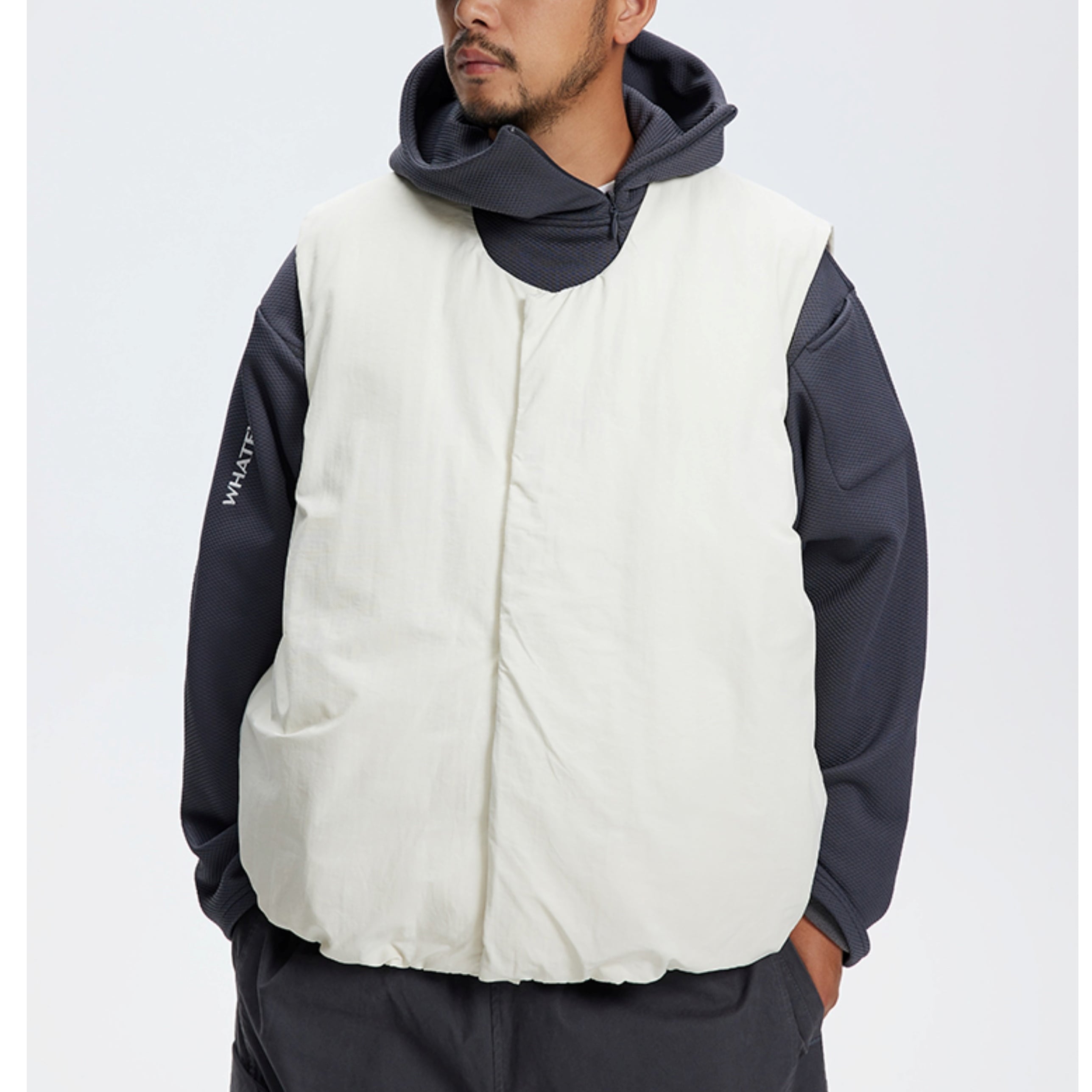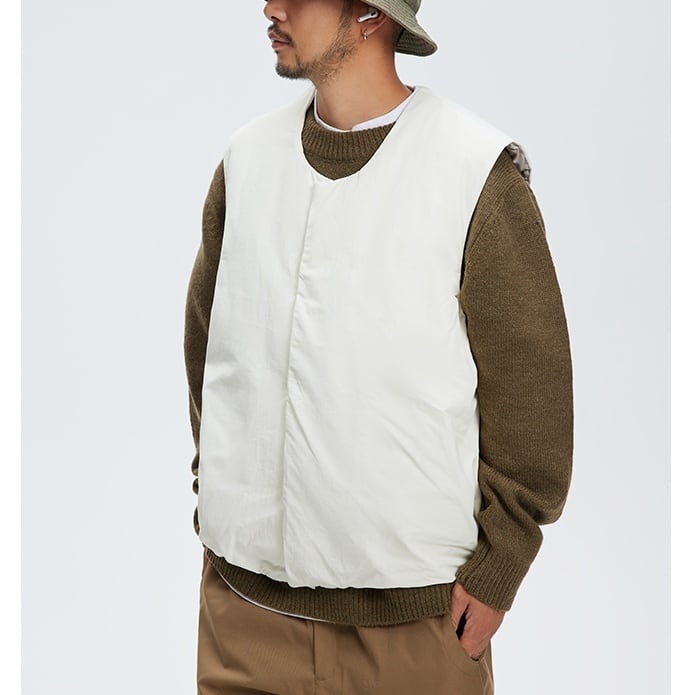 ノーカラーですっきりとしたデザインのダウンベスト。 シンプルでワイドシルエットのスウェットやニットとの相性抜群。 真冬はインナーダウンとしても活躍するアイテムです。 ■ color ホワイト ブラック ■ material 生地:コットン・ナイロン 中綿:ダウン ■ size M / L / XL / 2XL M :肩幅46cm 胸囲128cm 着丈69cm L :肩幅47cm 胸囲132cm 着丈71cm XL :肩幅48cm 胸囲136cm 着丈73cm 2XL :肩幅49cm 胸囲140cm 着丈75cm ※採寸方法により多少の誤差がある場合がございます ■モデル身長:175cm ■着用サイズ : L [ 商品管理番号:a-0744] 【お買い物にあたっての注意事項】ご購入前にこちらをご覧ください。 https://store.path-online.shop/about ▶<PATH>TOP PAGEから、新商品やお得な情報をチェック! https://store.path-online.shop/ ▶【Instagram】公式インスタグラムページはこちら。 https://www.instagram.com/path_official_jp/