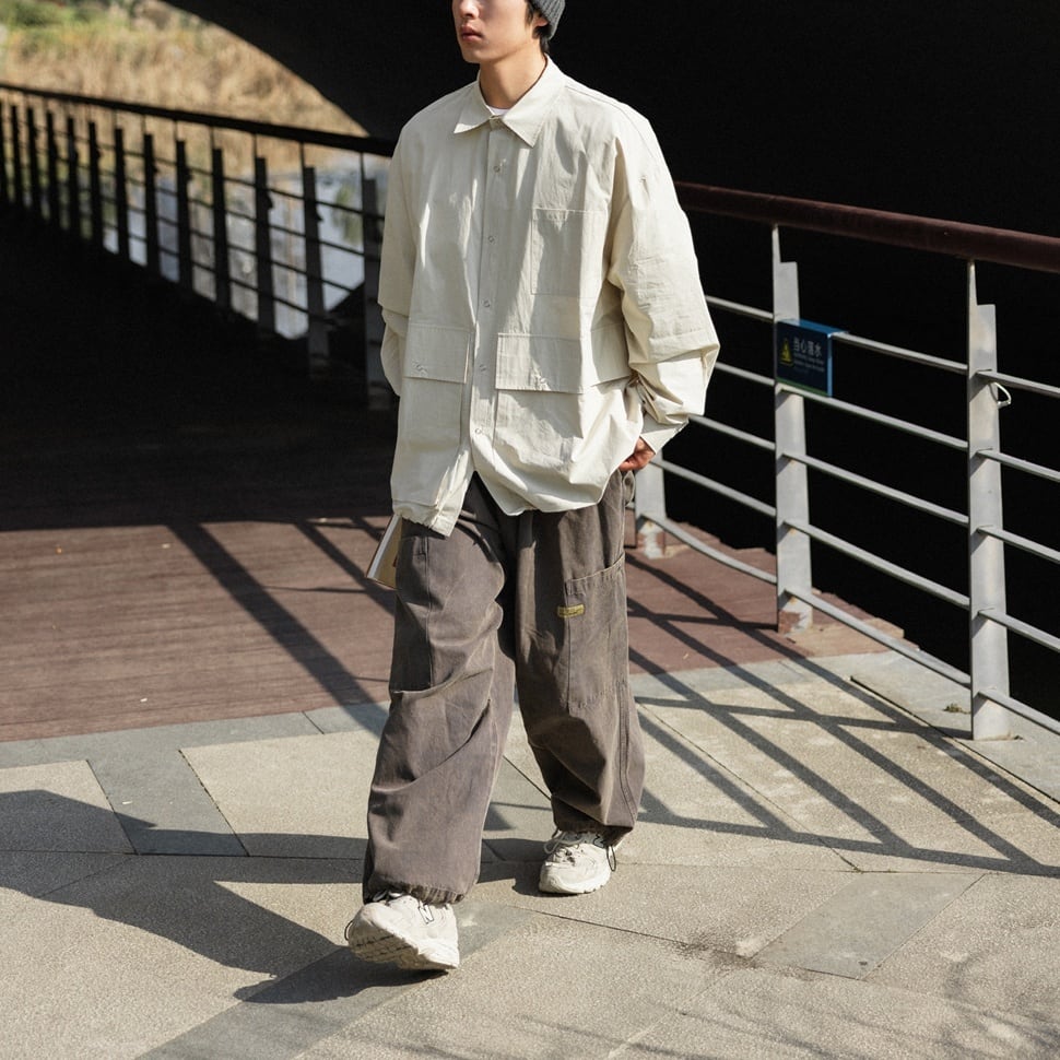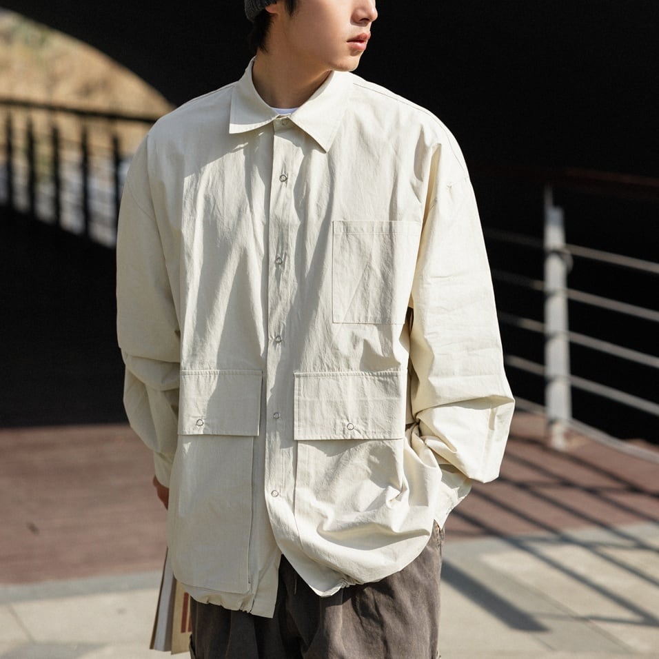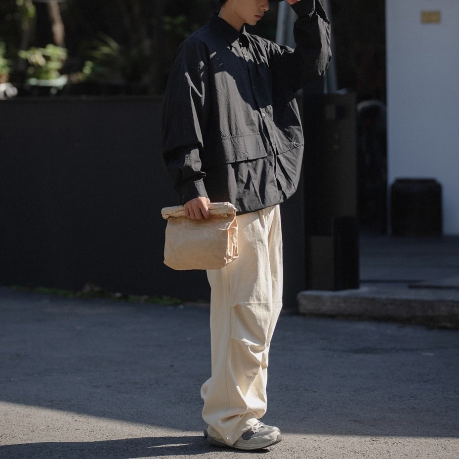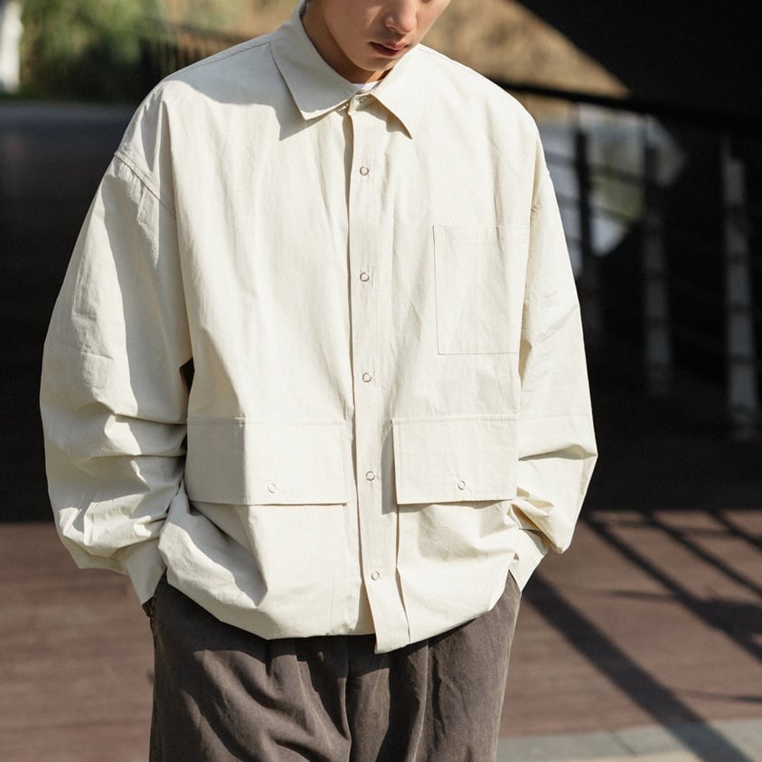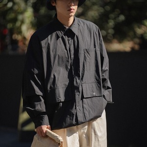 程よいワイドシルエットのボックスシルエットシャツ。 スナップボタン仕様で大き目のフラップポケットがポイントになっています。 カジュアルながらクリーンで大人っぽい印象で着こなしていただける一着。 裾のドローコードを絞ったスタイリングもオススメです。 ■ color オフホワイト ブラック ■ material コットン ■ size S / M / L / XL S :肩幅60cm 袖丈61cm 胸囲136cm 着丈73cm M :肩幅61cm 袖丈62cm 胸囲140cm 着丈75cm L :肩幅62cm 袖丈63cm 胸囲144cm 着丈77cm XL :肩幅63cm 袖丈64cm 胸囲148cm 着丈79cm ※採寸方法により多少の誤差がある場合がございます ■モデル身長:178cm ■着用サイズ : XL [ 商品管理番号:a-0750] 【お買い物にあたっての注意事項】ご購入前にこちらをご覧ください。 https://store.path-online.shop/about ▶<PATH>TOP PAGEから、新商品やお得な情報をチェック! https://store.path-online.shop/ ▶【Instagram】公式インスタグラムページはこちら。 https://www.instagram.com/path_official_jp/