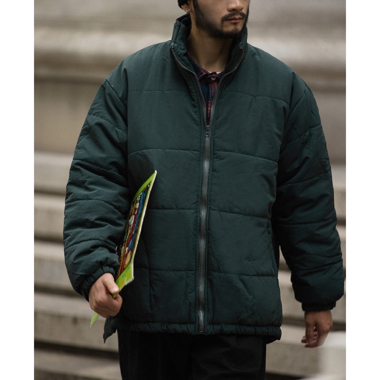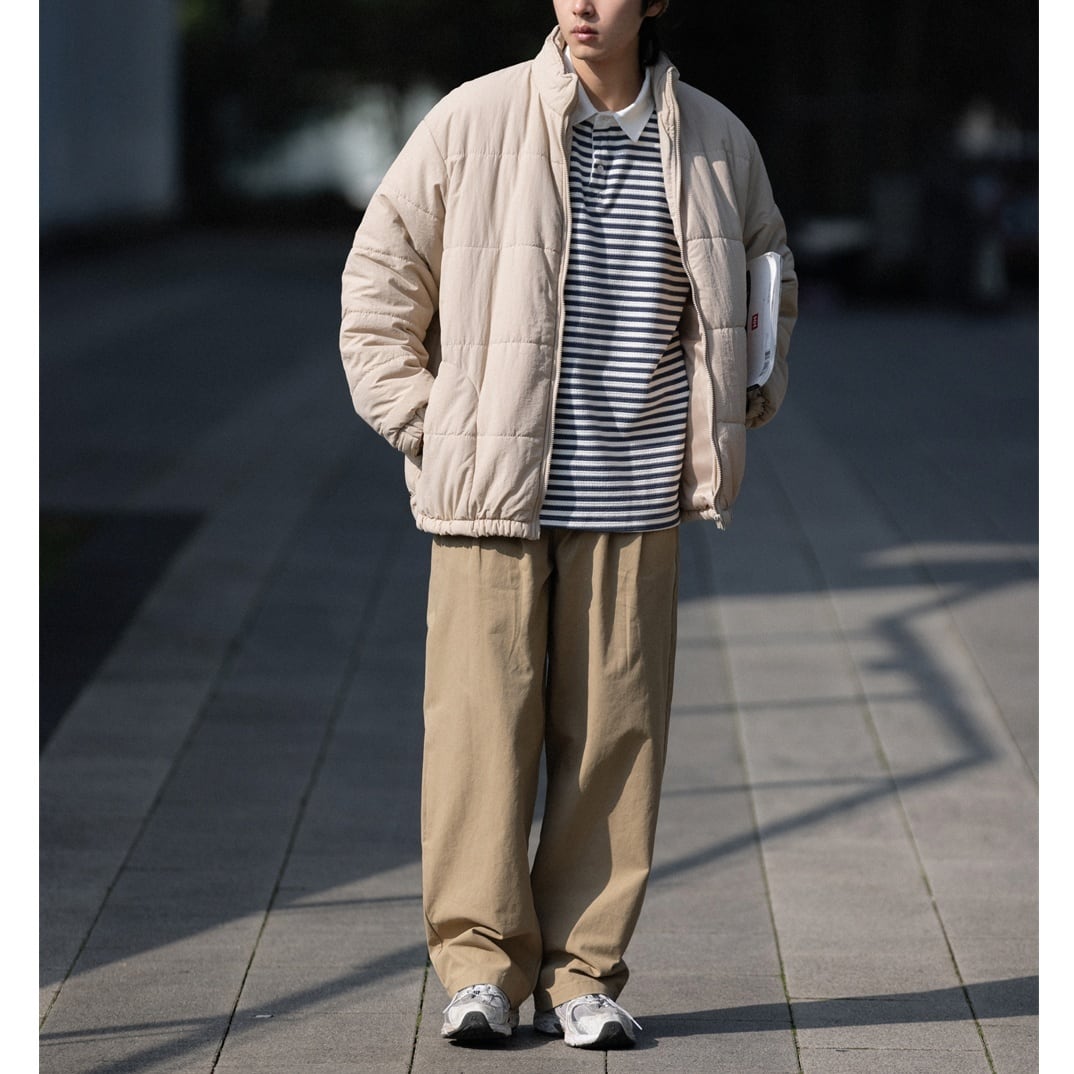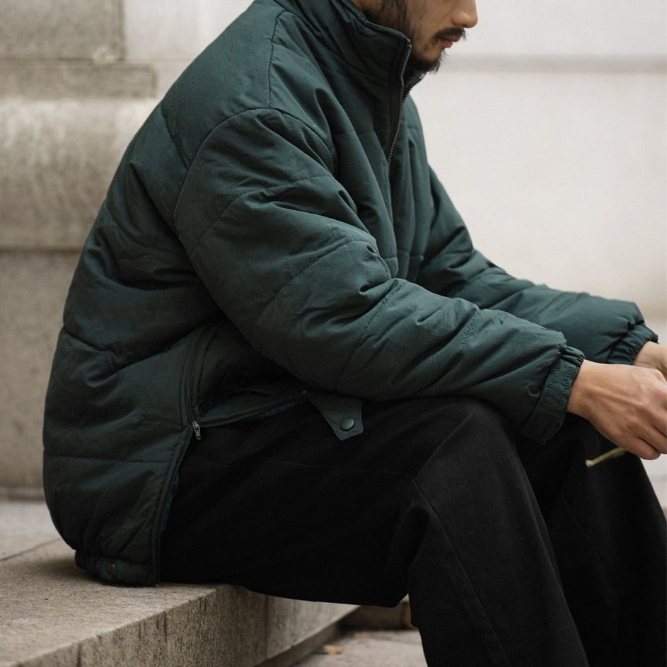 スタンドカラーの中綿入りワイドブルゾン。 サイドにはスリットジップがあり開けることでスタイリングのアクセントとなります。 ゆったりとしたワイドシルエットで秋冬シーズンにオススメの一着。 ワイドパンツから細めのパンツまで幅広いアイテムと合わせやすい一着です。 ※ベージュのボタンカラーは同色系のブラウンでございます。 ■ color ベージュ ダークグリーン ■ material ナイロン ■ size M / L / XL M :肩幅60cm 袖丈56cm 胸囲160cm 着丈78cm L :肩幅61cm 袖丈57cm 胸囲164cm 着丈80cm XL :肩幅62cm 袖丈58cm 胸囲168cm 着丈82cm ※採寸方法により多少の誤差がある場合がございます ■モデル身長:178cm ■着用サイズ : XL [ 商品管理番号:a-0752] 【お買い物にあたっての注意事項】ご購入前にこちらをご覧ください。 https://store.path-online.shop/about ▶<PATH>TOP PAGEから、新商品やお得な情報をチェック! https://store.path-online.shop/ ▶【Instagram】公式インスタグラムページはこちら。 https://www.instagram.com/path_official_jp/
