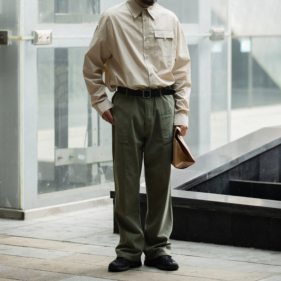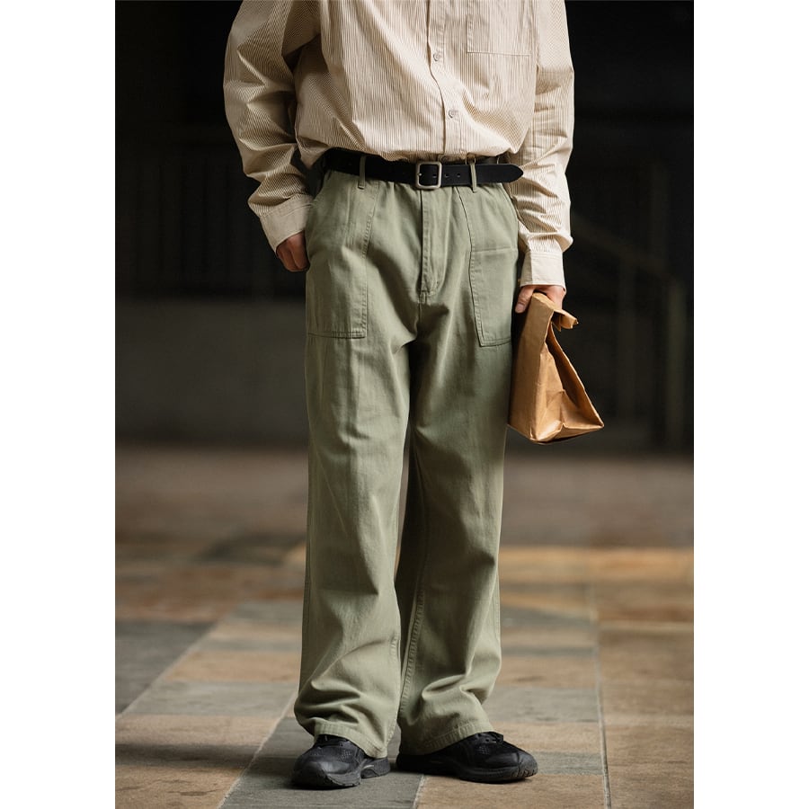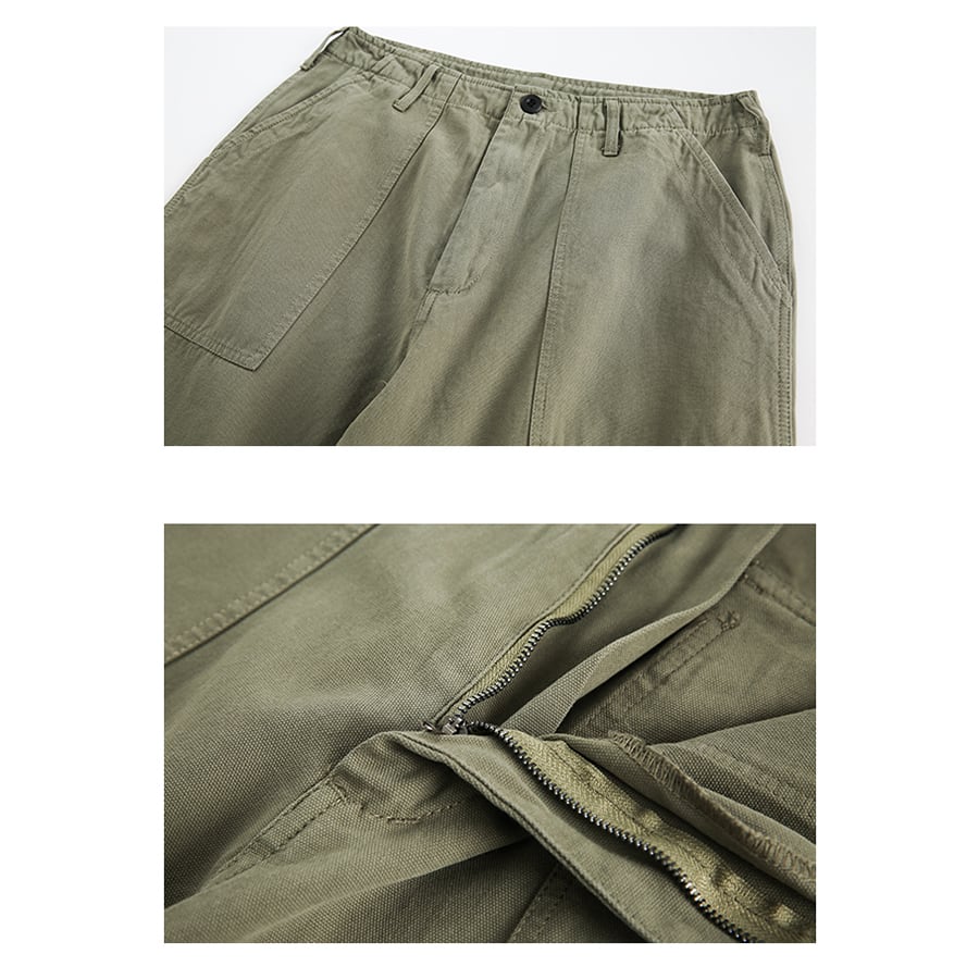 程よいワイドシルエットのベイカーパンツ。 洗いをかけた様なフェード感のある生地を使用し、ベーカーパンツ特有のポケットデザインがポイントになっています。 広いカジュアルスタイルと相性の良いアイテムです。 ■ color オリーブ ブラック ■ material コットン ■ size S / M / L / XL S :ウエスト76cm ヒップ104cm 総丈99cm M :ウエスト80cm ヒップ108cm 総丈103cm L :ウエスト84cm ヒップ112cm 総丈106cm XL :ウエスト88cm ヒップ116cm 総丈109cm ※採寸方法により多少の誤差がある場合がございます ■モデル身長:178cm ■着用サイズ:XL [ 商品管理番号:a-0771] 【お買い物にあたっての注意事項】 ご購入前にこちらをご覧ください。 https://store.path-online.shop/about ▶<PATH>TOP PAGEから、新商品やお得な情報をチェック! https://store.path-online.shop/ ▶【Instagram】公式インスタグラムページはこちら。 https://www.instagram.com/path_official_jp/