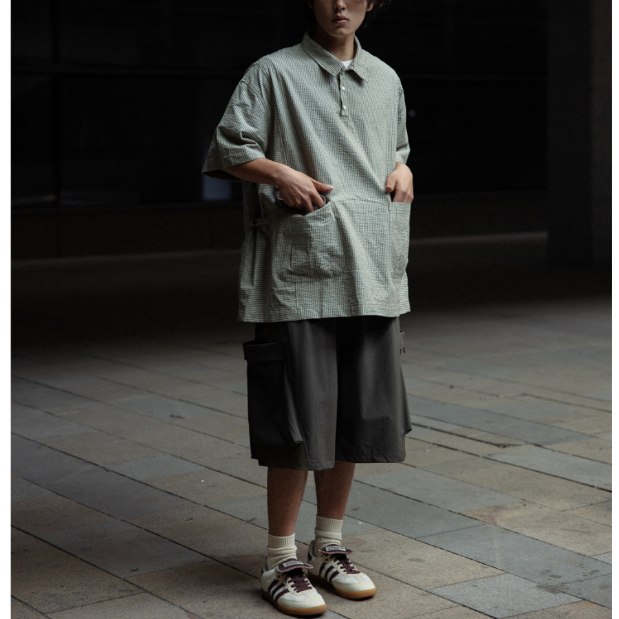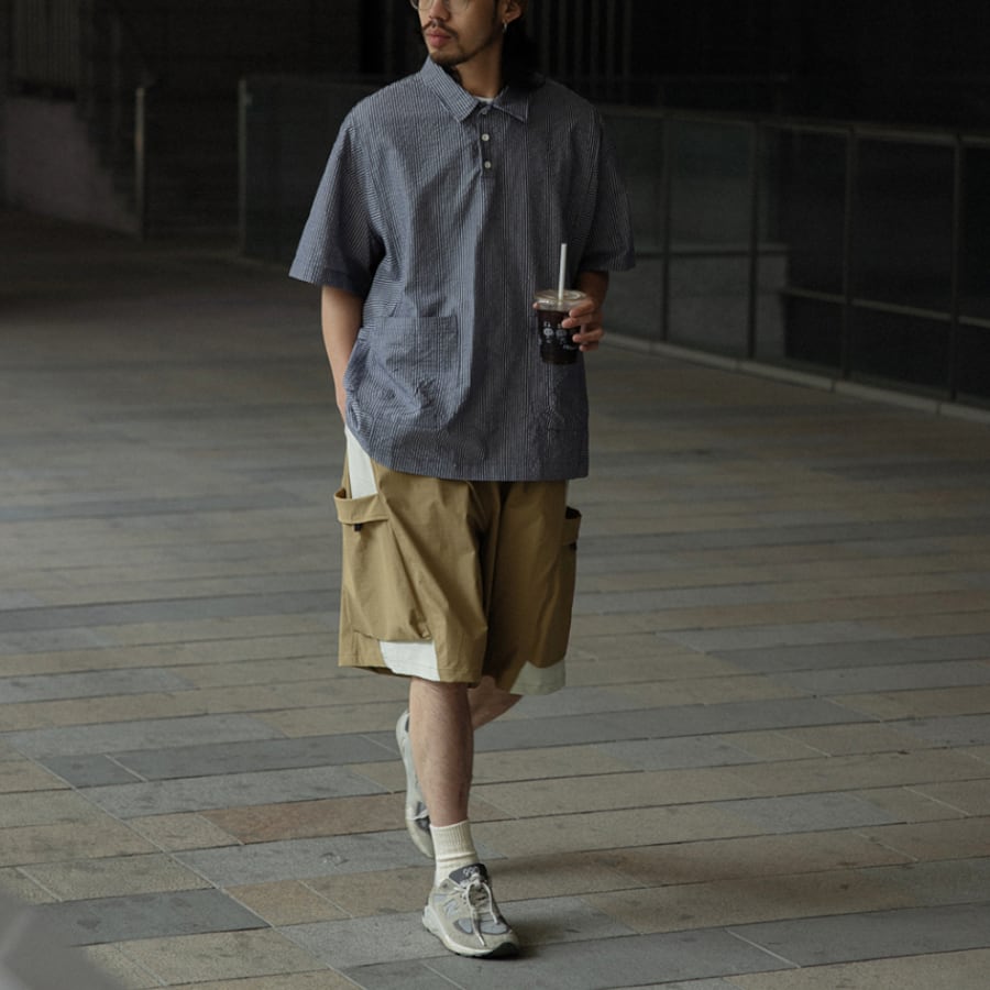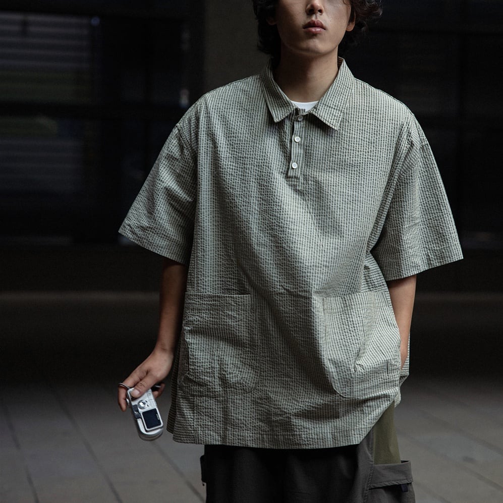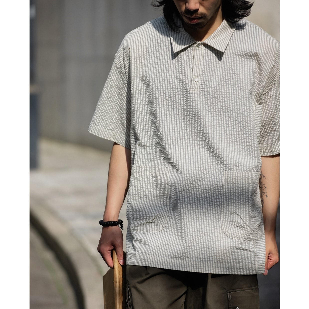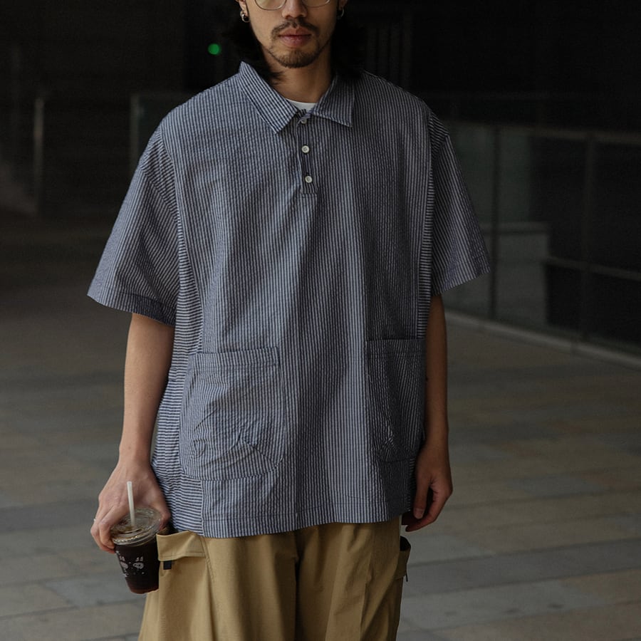 プルオーバー ストライプ フォルムポケットシャツ a-0869