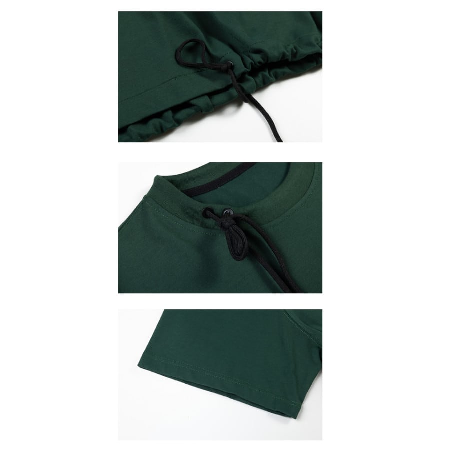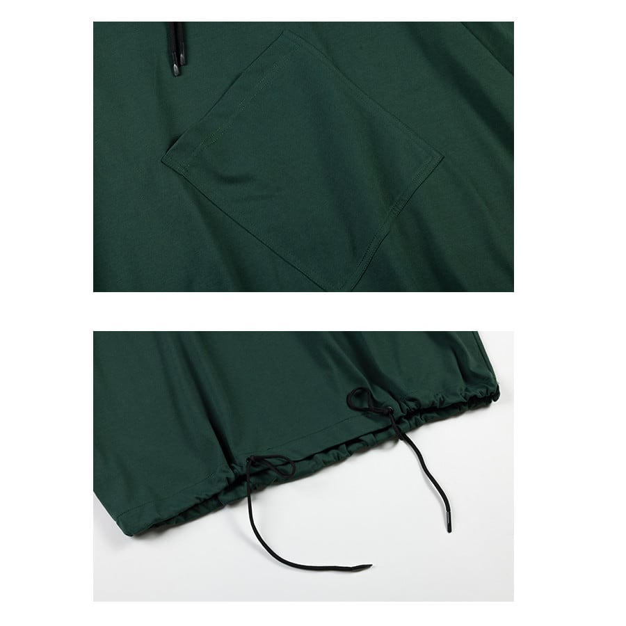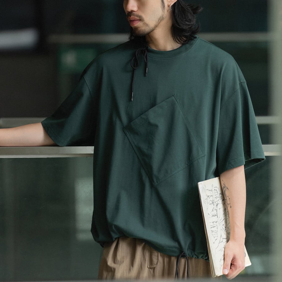 ネック部分と裾のコードデザインや大き目のポケットがポイントのTシャツ。