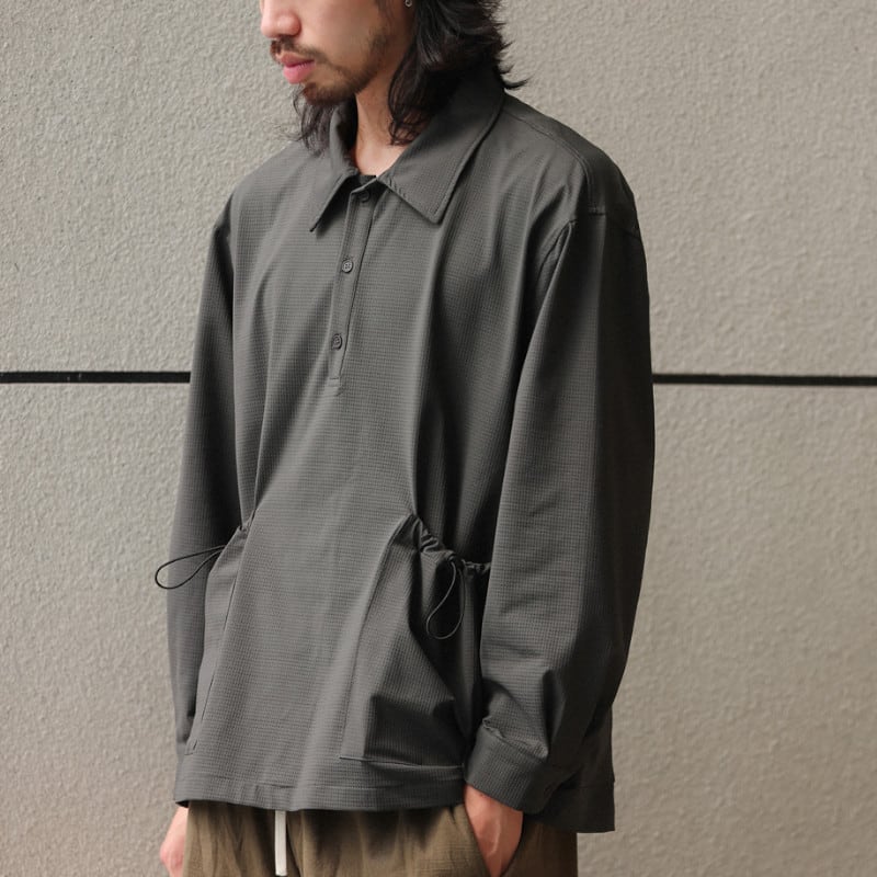プルオーバーのワイドシルエットシャツ。 腰元にセットされたドローコード付きのポケットがポイントになっています。 一枚着としてはもちろん、インナーとしても活躍するアイテムです。 ■ color ブラウン ダークグレー ■ material ポリエステル ■ size M / L / XL M :肩幅53cm 袖丈55cm 胸囲130cm 着丈71cm L :肩幅55cm 袖丈56cm 胸囲134cm 着丈73cm XL :肩幅57cm 袖丈57cm 胸囲138cm 着丈75cm ※採寸方法により多少の誤差がある場合がございます ■モデル身長:178cm ■着用サイズ : XL [ 商品管理番号:a-0962] 【お買い物にあたっての注意事項】 ご購入前にこちらをご覧ください。 https://store.path-online.shop/about ▶<PATH>TOP PAGEから、新商品やお得な情報をチェック! https://store.path-online.shop/ ▶【Instagram】公式インスタグラムページはこちら。 https://www.instagram.com/path_official_jp/
