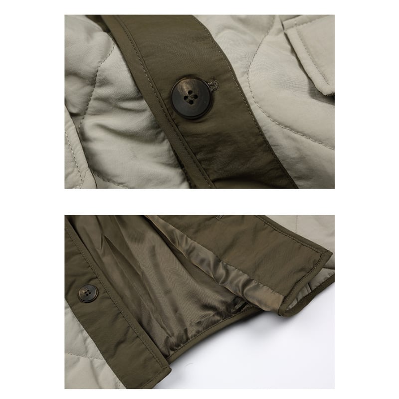バイカラーデザインとキルティングが雰囲気のあるシャツアウター。 程よく中綿が入っており、アウターとしてはもちろん、コートなどのインナーとして着用していただけます。 ワイドシルエットのパンツと相性が良く、インナーはシンプルなスウェットやニットがオススメです。 ■ color ベージュグレー ■ material ナイロン ■ size M / L / XL / 2XL M :肩幅52cm 袖丈64.5cm 胸囲131cm 着丈72cm L :肩幅53cm 袖丈65.5cm 胸囲135cm 着丈74cm XL :肩幅54cm 袖丈66.5cm 胸囲139cm 着丈76cm 2XL :肩幅55cm 袖丈67.5cm 胸囲143cm 着丈78cm ※採寸方法により多少の誤差がある場合がございます ■モデル身長:178cm ■着用サイズ : XL [ 商品管理番号:a-1011] 【お買い物にあたっての注意事項】 ご購入前にこちらをご覧ください。 https://store.path-online.shop/about ▶<PATH>TOP PAGEから、新商品やお得な情報をチェック! https://store.path-online.shop/ ▶【Instagram】公式インスタグラムページはこちら。 https://www.instagram.com/path_official_jp/