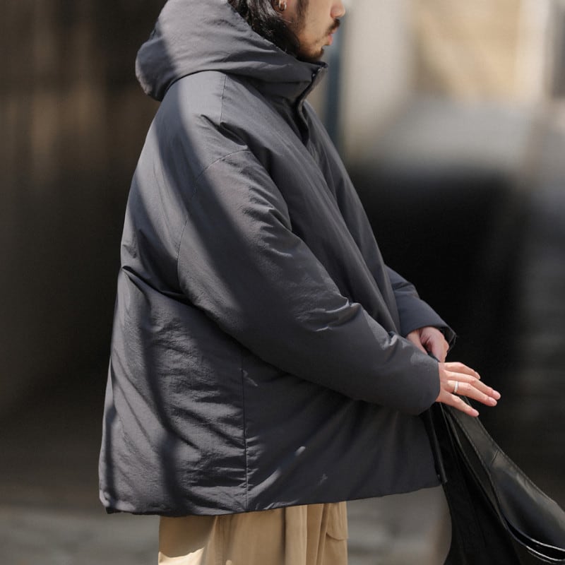 ルーズシルエットの中綿入りブルゾン。 シンプルでクリーンなデザインの為、ルーズシルエットですがラフ過ぎないキレイ目なアイテムに仕上がっています。 合わせるインナーを選ばず、ワイドシルエットパンツと相性が良い一着です。 ■ color ライトグリーン ダークグレー ■ material ナイロン ■ size M / L / XL M :肩幅68cm 袖丈59cm 胸囲148cm 着丈79cm L :肩幅70cm 袖丈60cm 胸囲156cm 着丈81cm XL :肩幅72cm 袖丈61cm 胸囲164cm 着丈83cm ※採寸方法により多少の誤差がある場合がございます ■モデル身長:178cm ■着用サイズ : XL [ 商品管理番号:a-1013] 【お買い物にあたっての注意事項】 ご購入前にこちらをご覧ください。 https://store.path-online.shop/about ▶<PATH>TOP PAGEから、新商品やお得な情報をチェック! https://store.path-online.shop/ ▶【Instagram】公式インスタグラムページはこちら。 https://www.instagram.com/path_official_jp/